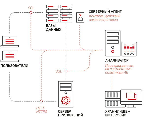 Решения защиты баз данных класса DAM (Database Activity Monitoring) и DBF (Database Firewall) обеспечивают: